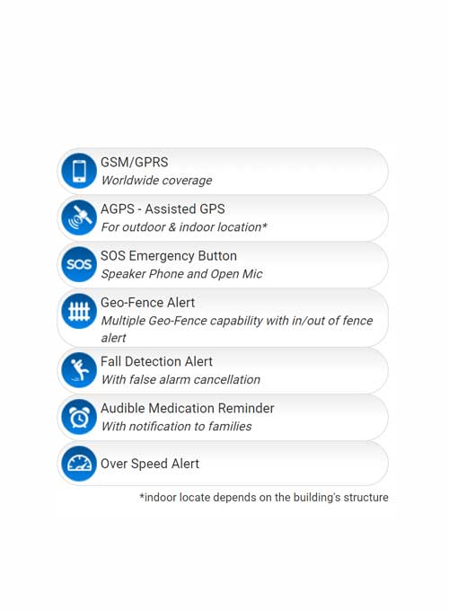 Le S911 Lola est un tracker GPS personnel équipé d'un bouton SOS panic qui permet une connexion directe à un numéro de téléphone prédéterminé automatiquement. Une fois que le bouton SOS panique est pressé pendant 3 secondes, le périphérique S911 Lola envoie instantanément un message texte et une alerte système au numéro de téléphone de contact d'urgence prédéterminé indiquant l'identification de l'appelant S911 Lola, les coordonnées de localisation (latitude et longitude) du support Comme l'heure et la date de l'activation de l'alarme de panique tout en appuyant sur un bouton. Le bouton SOS panic ouvre immédiatement une communication cellulaire bidirectionnelle entre le titulaire du S911 Lola et le numéro de téléphone de contact d'urgence désigné par un haut parleur. Dans le cas où le titulaire du périphérique S911 Lola ne parvient pas à parler ou à communiquer, l'alarme panique SOS sera toujours émise et l'emplacement identifiera l'emplacement exact de l'urgence. Les services de soutien ou le contact d'urgence fourniront l'assistance appropriée dans le lieu identifié. Le S911 Lola assure la sécurité et la sécurité de l'utilisateur et une tranquillité d'accueil. Il peut également être surveillé en temps réel sur LocationNow.com. Donc, peu importe si vous magasinez, marchez, voyagez ou en vacances, le S911 Lola vous protégera toujours.